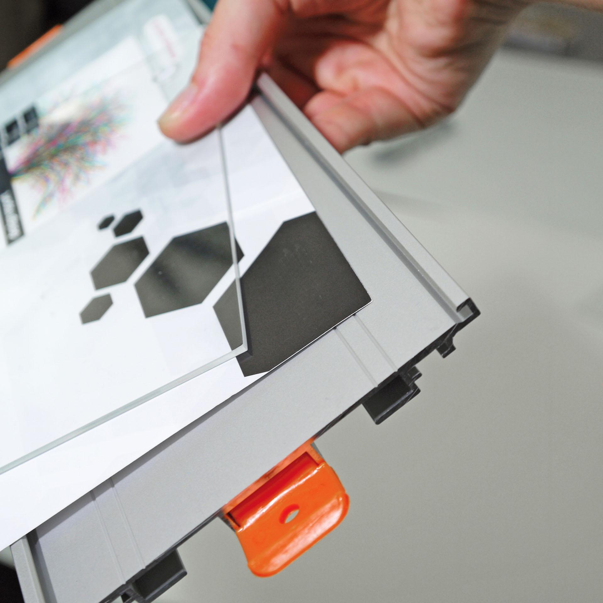Signcode è la soluzione ideale per una segnaletica modulare professionale e dal design elegante. Realizzato con profili in alluminio anodizzato color argento, questo sistema si distingue per la sua struttura solida e il look moderno.
