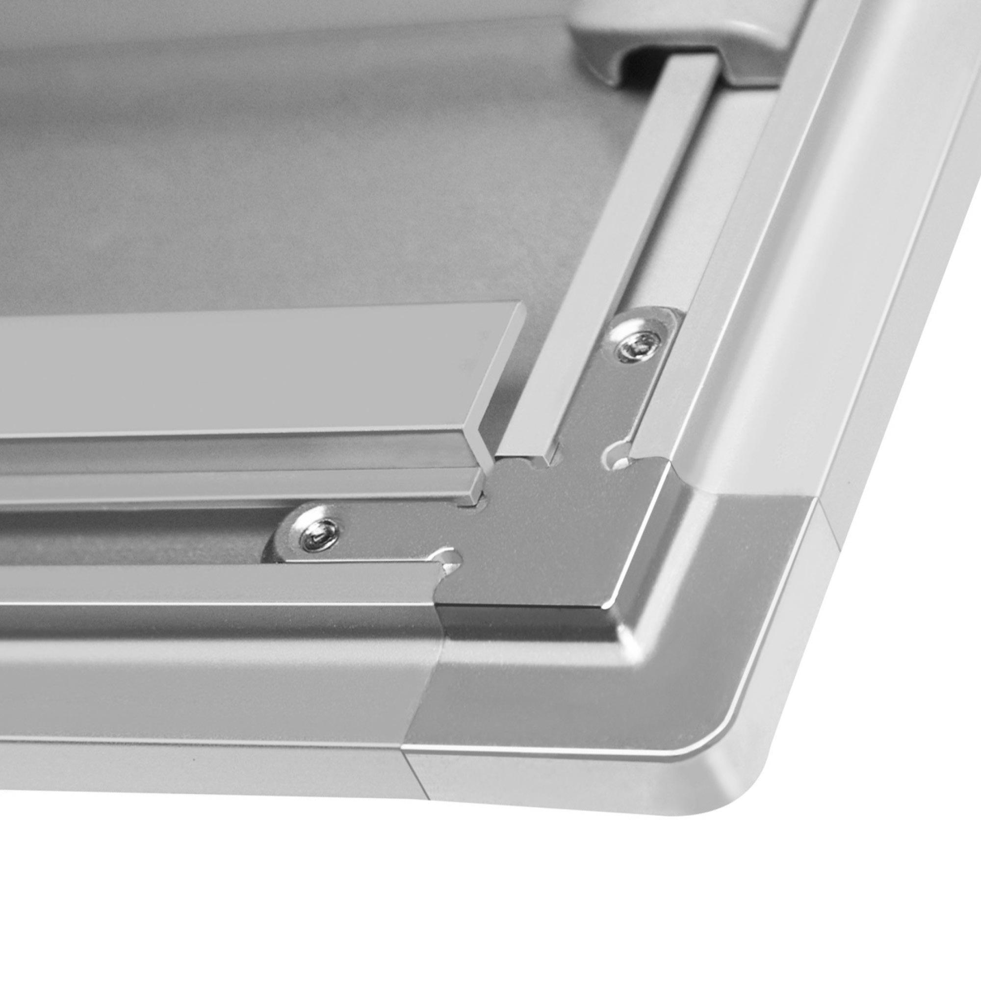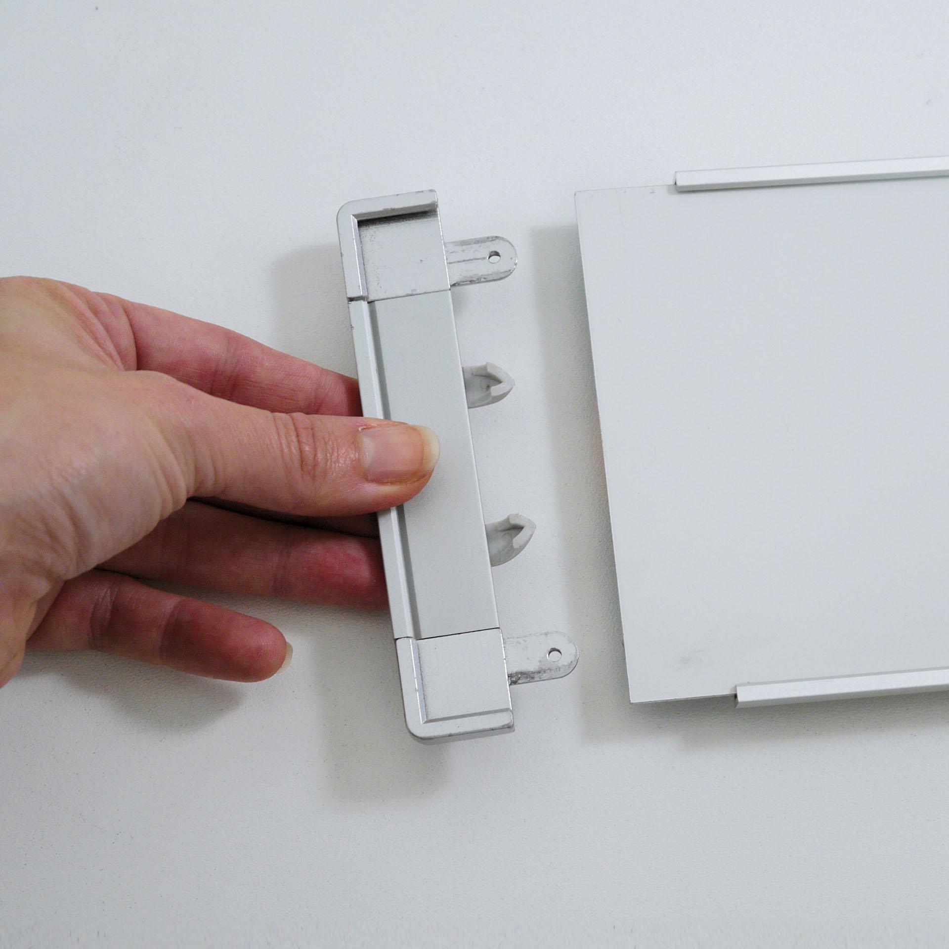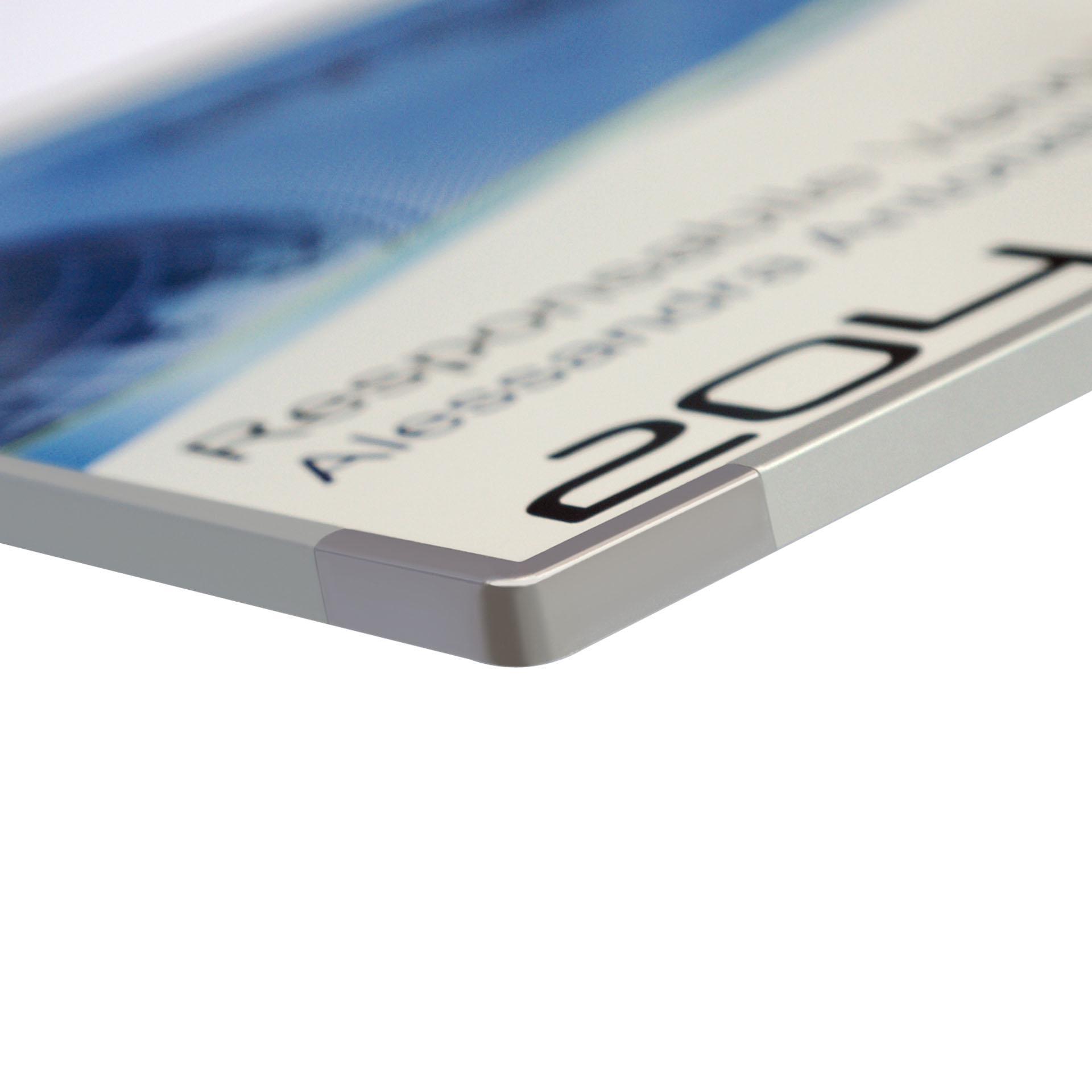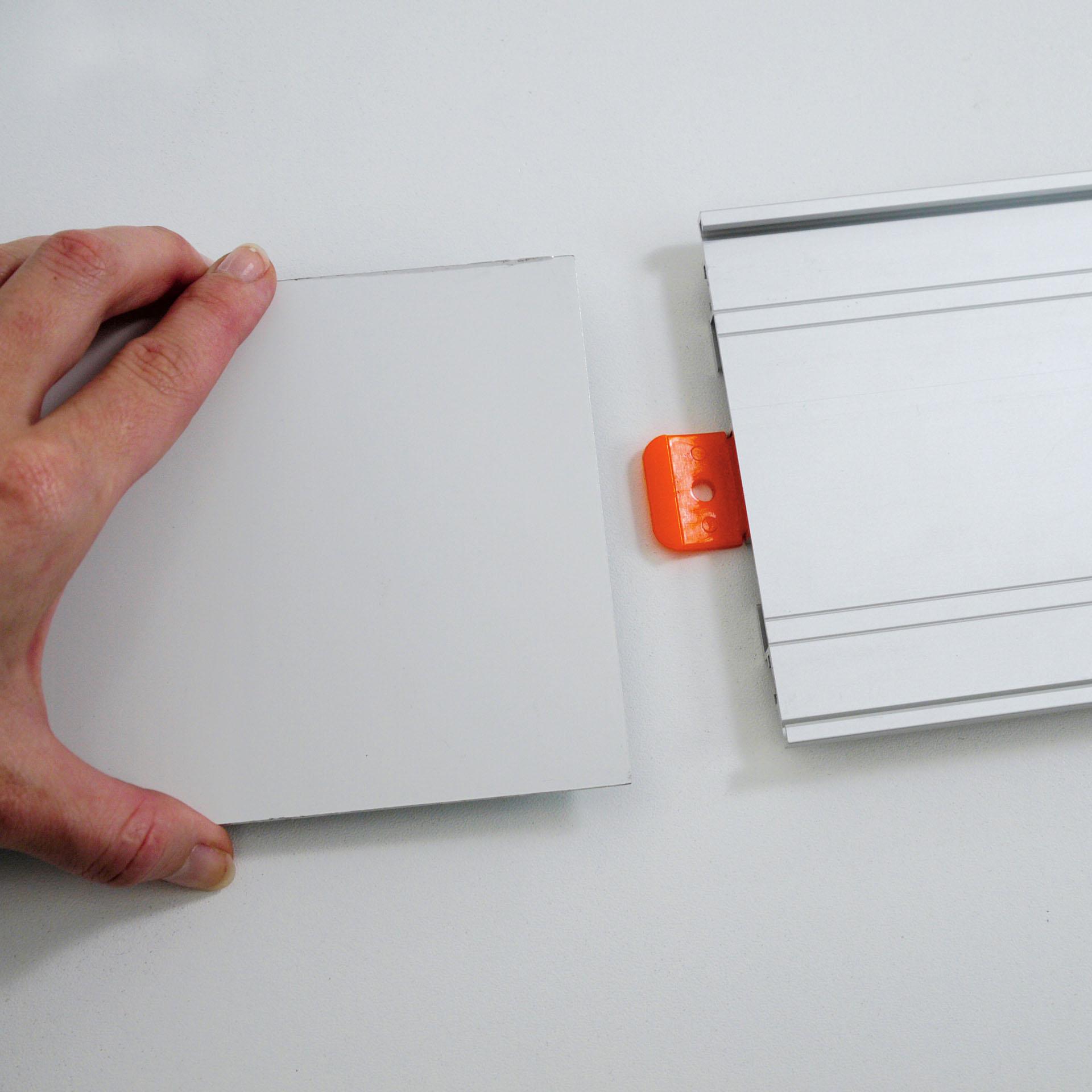 Pannello a parete della linea signcode, con profili in alluminio anodizzato color argento. Il cartello modulare a parete è dotato di un pannello di alluminio verniciato che può essere decorato con pellicola adesiva o stampato direttamente. I cartelli modulari intercambiabili e i pannelli riepilogativi della linea signcode sono disponibili in molti formati.