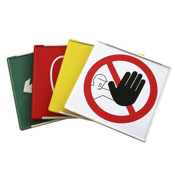 segnaletica a parete completa di pittogrammi e angoli e cornici verticali del colore corrispondente al pittogramma stesso per uso interno: signcode secure vi offre una segnaletica completa. disponibile in quattro formati standard con pittogrammi realizzati in serigrafia per segnaletica di evacuazione e direzione. i pittogrammi possono essere sostituiti in modo facilee veloce grazie all´intelligente sistema signcode.