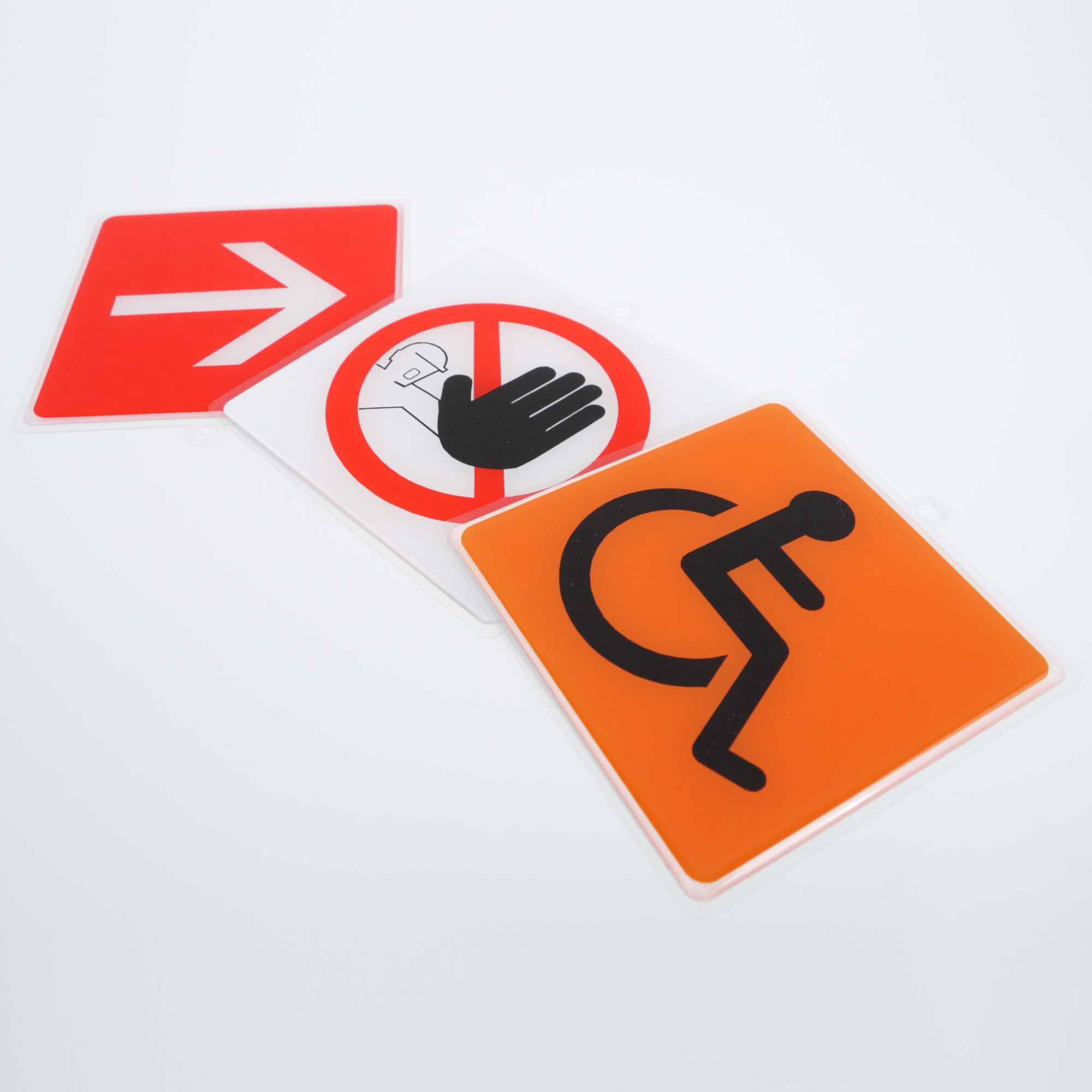 segnaletica adesiva con effetto 3D, resistente ai raggi UV, di lunga durata, a prova di graffio, con serigrafi a a due colori, adatto ad applicazioni in ambienti con temperature da -30°C a +120°C. in fase di ordine si prega di specificare codice dell'articolo e numero del pittogramma desiderato. le norme relative alla segnaletica di sicurezza variano da nazione a nazione. vi preghiamo quandi di verificare se i pittogrammi offerti corrispondono alle normative sulla segnaletica di sicurezza del vostro paese.