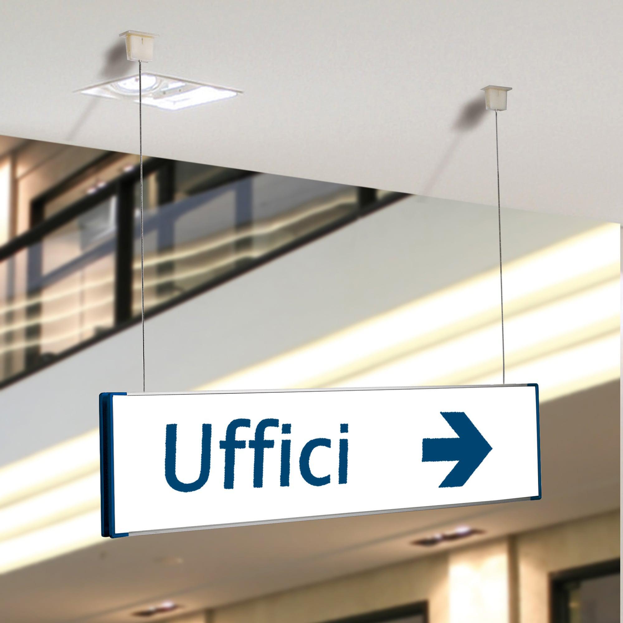 L´innovativa segnaletica signcode colors offre un sistema direzionale a colori integrato nella cornice, adatto per indicatori a bandiera verticali o orizzontali. oltre ai 4 colori standard della segnaletica di sicurezza, diamo la possibilità di scegliere fra ulteriori 4 colori. Come già previsto dal sistema signcode, anche in questo caso sono disponibili le due versioni: con pannelli in alluminio per stampa diretta o con un protettivo trasparente in PS, che permette l´inserimento di stampe realizzate su supporto cartaceo. entrambi i sistemi sono a prova di manomissione, ma permettono comunque una semplice e veloce sostituzione delle informazioni evitando di smontare l'intera targa.