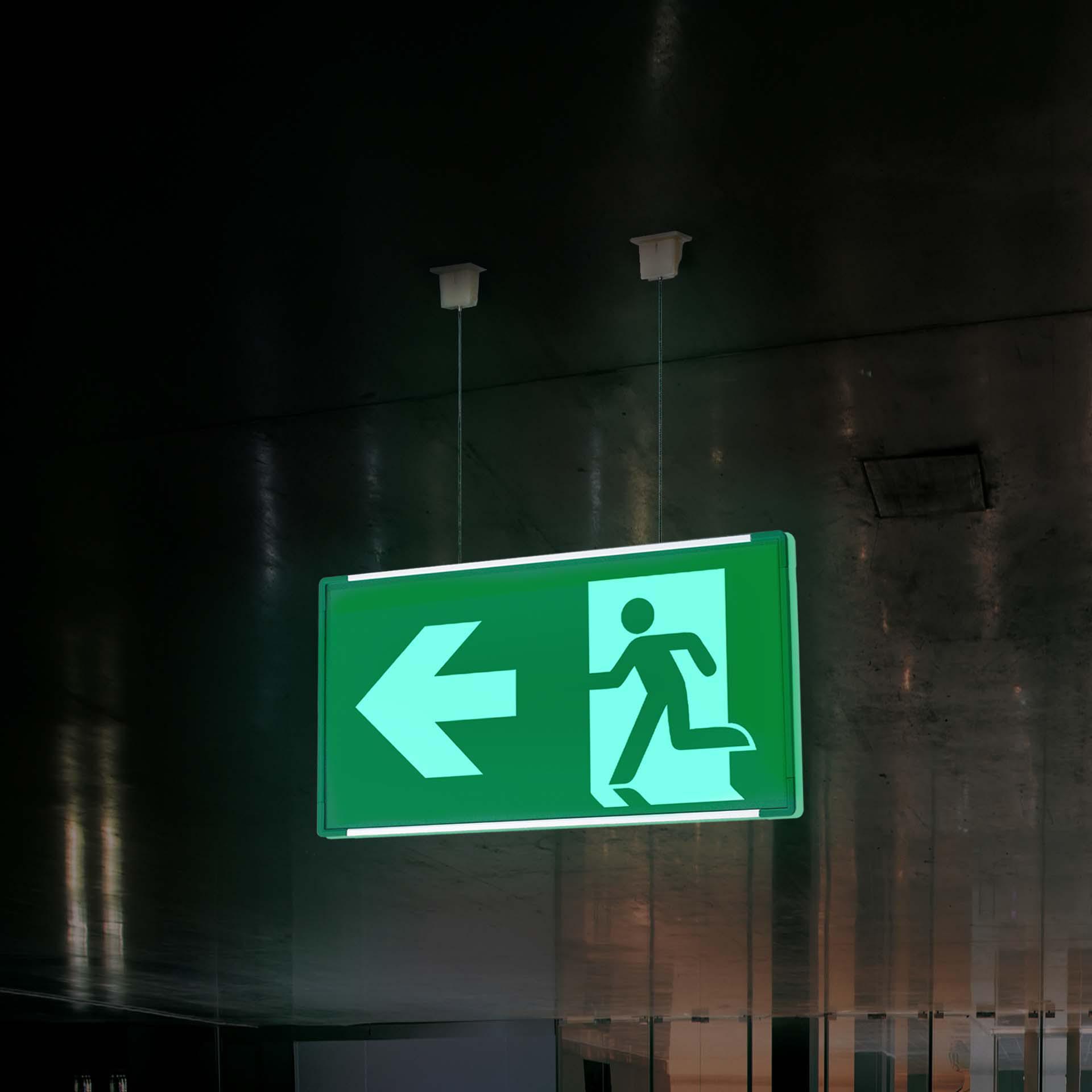 Segnaletica di sicurezza luminescente di lunga durata unita all´intelligente sistema signcode: signshine offre una stampa digitale realizzata su pvc fotoluminescente, ad alta e prolungata luminescenza. È possibile ricaricare signshine molto di frequente, è certificato per segnaletica interna e ha un'autonomia superiore alle 12 ore. Offriamo misure standard per segnaletica a parete, a bandiera e a soffitto, o in alternativa anche solo i pannelli stampati con adesivo per l'applicazione. I lati colorati (le parti orizzontali e, rispettivamente, le parti verticali per sistemi flag) sono in corrispondenza con il pittogramma scelto.