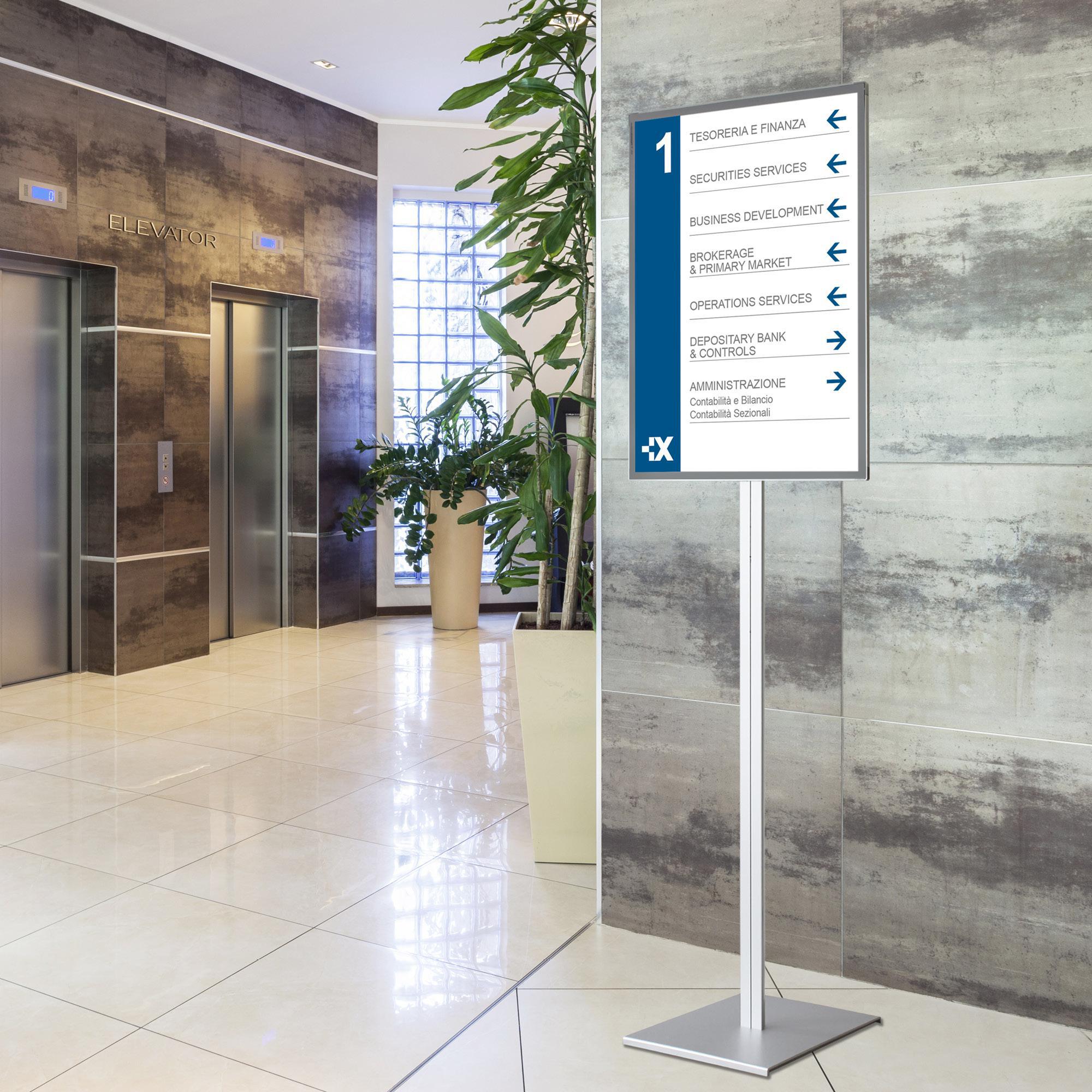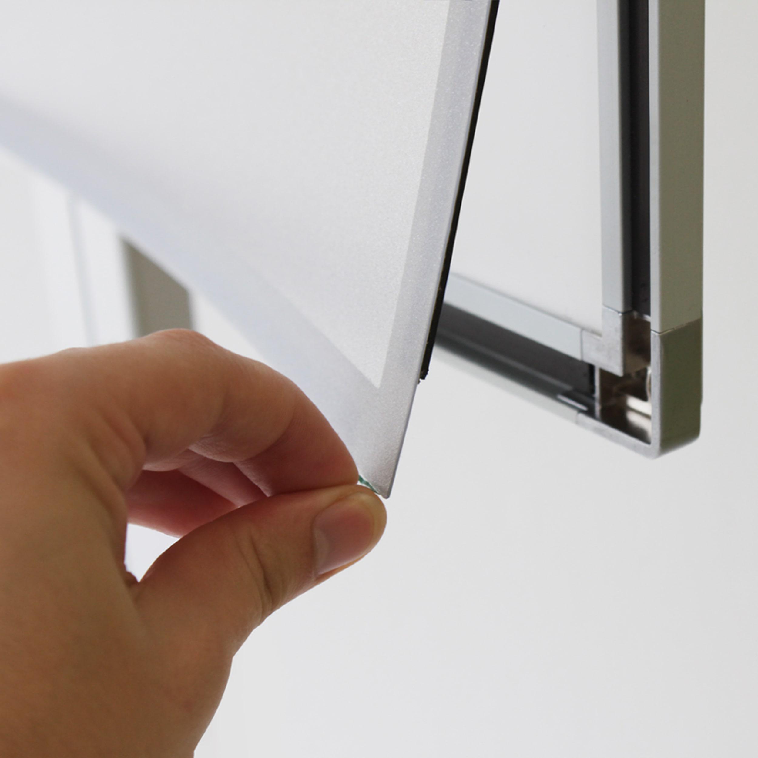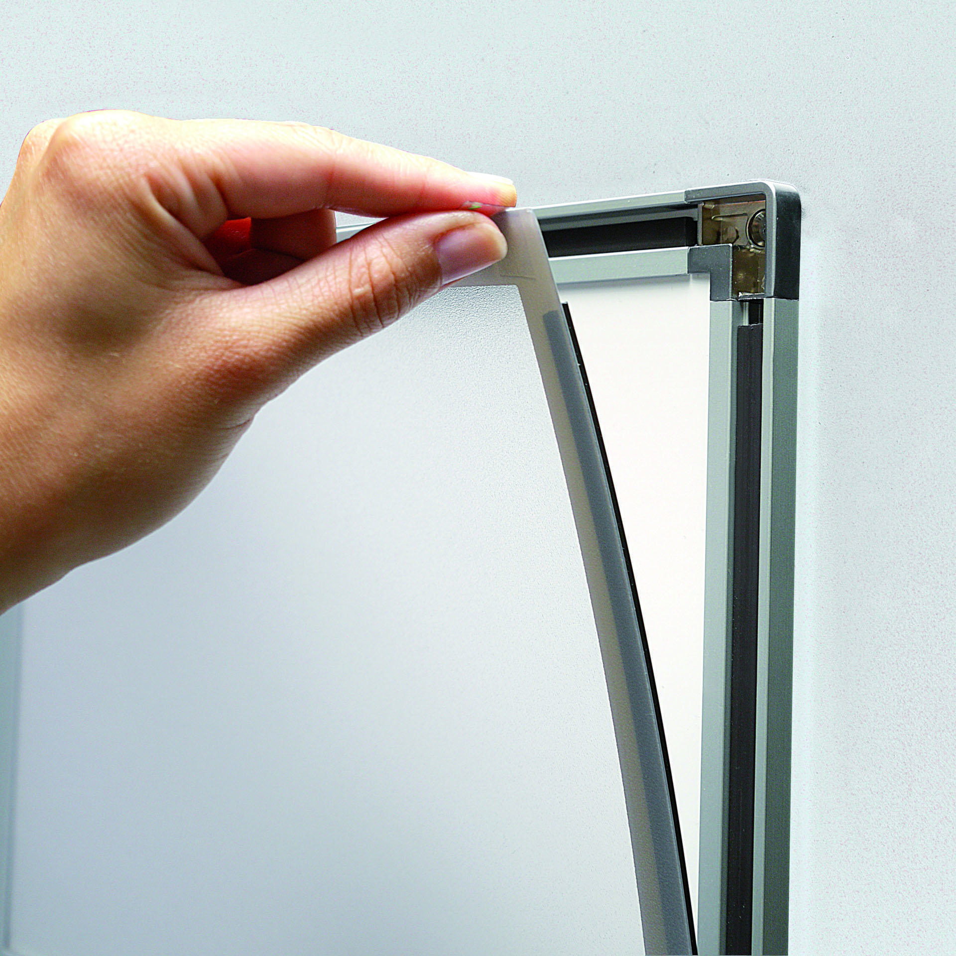 Il portainformazioni Magnofloor è una soluzione efficace per esporre poster informativi e cambiarli velocemente. Posiziona il porta-poster all´altezza desiderata e montalo al profilo utilizzando le viti filettate. Il cambio dell´informazione è semplice: il protettivo frontale è fissato con dei magneti ed è possibile aprirlo o rimuoverlo completamente. I portaposter possono essere acquistati singolarmente: in questo modo, se lo si desidera, sarà possibile utilizzare magnofloor anche in modo bifacciale.