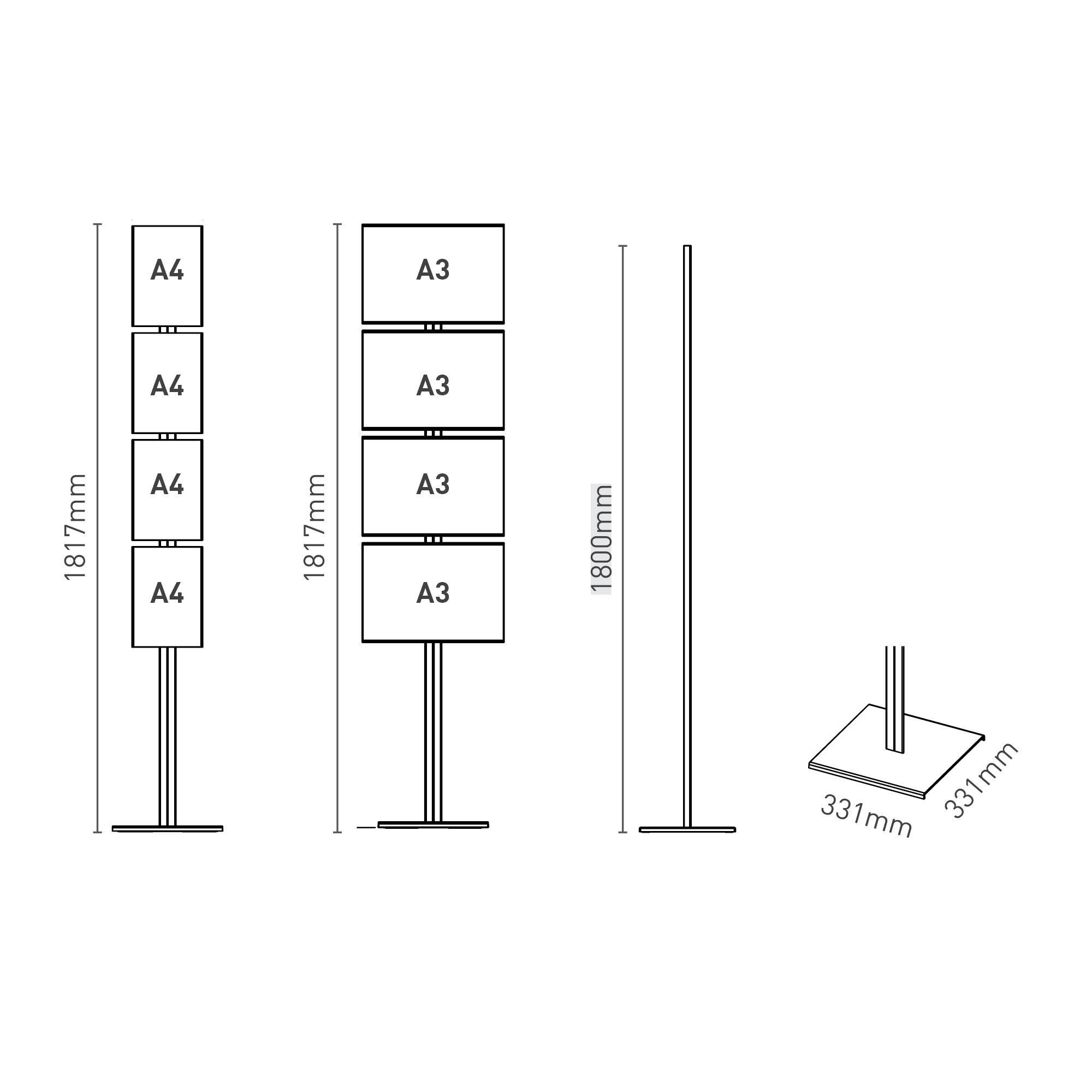 Smart Floor è la soluzione perfetta ovunque sia necessario cambiare fogli informativi in modo frequente. Le tasche portainformazioni con look senza cornice possono essere posizionate all‘altezza desiderata e fissate direttamente al profilo con le viti filettate. Le tasche possono essere aperte lateralmente o completamente. In questo modo il cambio è semplice e veloce. La presentazione senza effetto cornice, le tasche piatte e il design snello mettono al centro la cosa più importante: la tua informazione!